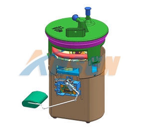 燃油泵總成主要由泵芯、液位傳感器、浮子總成、儲(chǔ)油桶、出油管、回油管以及泵蓋組成。泵和電動(dòng)機(jī)同軸安裝,并且封閉在同一個(gè)機(jī)殼內(nèi)。燃油泵總成以一定的油壓和流量將燃油從油箱輸送到發(fā)動(dòng)機(jī),并與整車的液位儀表連接,檢測油箱內(nèi)的液位值。